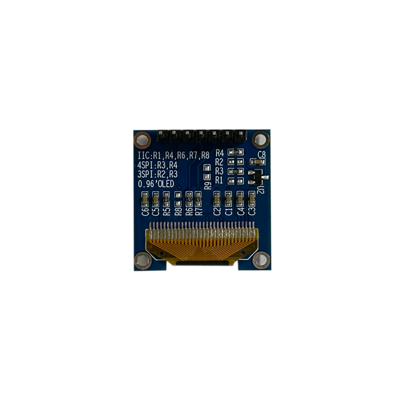 0,96-цалевы экран OLED-дысплея SSD1306 - гэта манахромны дысплейны модуль, заснаваны на тэхналогіі арганічных святловыпрамяняльных дыёдаў з пасіўнай матрыцай, з раздзяленнем 128 х 64 пікселяў і эфектыўным памерам вобласці адлюстравання 21,744 х 10,864 мм. Модуль 0,96 OLED - гэта кампактны і вельмі надзейны дысплейны модуль, які аб'ядноўвае пасіўную матрычную OLED (PM OLED) панэль з кантролерам драйвера SSD1306. Са стандартным дазволам 128 × 64 пікселяў ён забяспечвае выразныя, выразныя выявы з выдатнай кантраснасцю і шырокім вуглом агляду, што робіць яго ідэальным для прыкладанняў з абмежаванай прасторай і строгімі патрабаваннямі да якасці дысплея. З'яўляючыся прафесійным пастаўшчыком 0,96-цалевых OLED-модуляў PM, ён падтрымлівае некалькі інтэрфейсаў сувязі, нізкае энергаспажыванне і шырокі дыяпазон працоўных тэмператур, што дазваляе адаптавацца да розных цяжкіх працоўных умоў.
