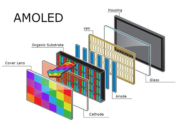 AMOLED або Active-Matrix OLED таксама можна назваць «Active OLED» або «active OLED». У адрозненне ад PMOLED, ён выкарыстоўвае TFT (тонкаплёнкавы транзістар) з кандэнсатарамі для захоўвання і кіравання электрычнымі сігналамі, якія пасылаюцца ў пікселі. Незалежна і дакладна кантраляваць яркасць і шкалу шэрага OLED-пікселяў і г. д. Хоць яго кошт вышэйшы, чым у PMOLED, перавагі высокай кантраснасці, высокай рэакцыі, шырокай каляровай гамы, нізкага спажывання энергіі і вялікага памеру зрабіліAMOLEDабсалютны мэйнстрым OLED-панэляў сёння. Перавагамі з'яўляюцца нізкая кіруючая напруга і працяглы тэрмін службы святловыпрамяняльных кампанентаў. Аднак высокі кошт і больш складаны працэс вытворчасці яшчэ больш ускладняюць кантроль за коштам.
