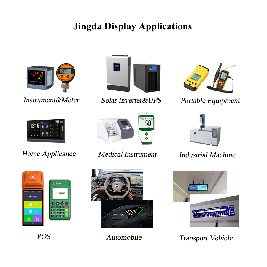 Графічны ВК-дысплей: абсталяванне прамысловага кіравання, медыцынскае абсталяванне, POS-машыны, вымяральныя прыборы, аўтамабільныя дысплеі, кітайскія інтэрфейсы меню і г.д.